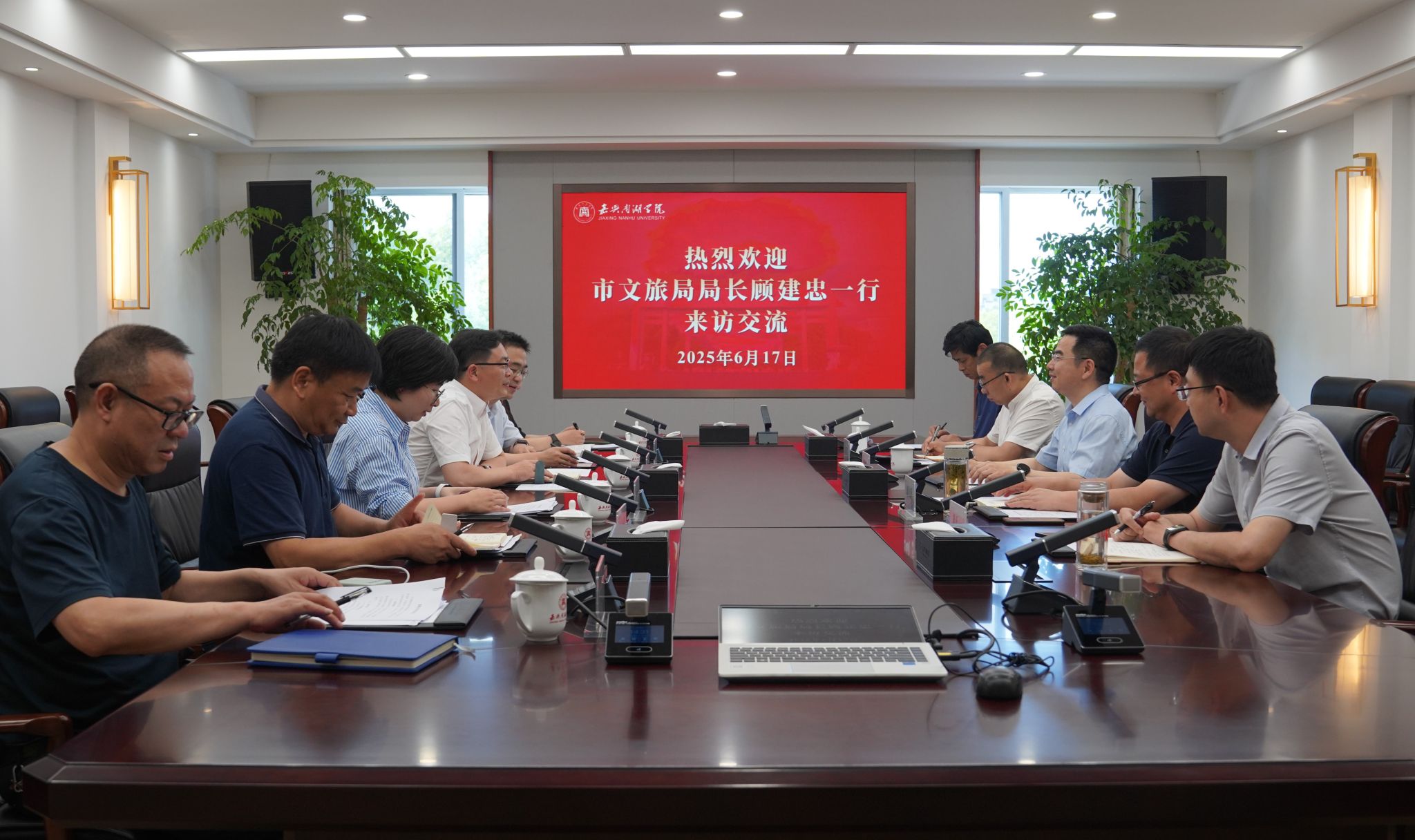 6月17日下午,嘉兴市文旅局党委书记、局长顾建忠,党委副书记、副局长钱霄栋一行来校,就双方合作事项进一步深化交流。校党委书记倪沪平热情接待了文旅局一行,校党委副书记胡文蔚参加座谈交流。
