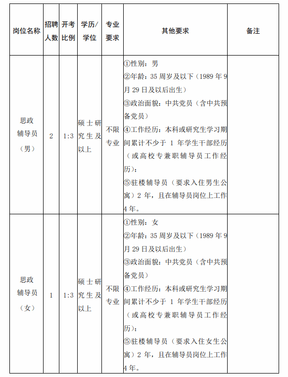 三、招聘资格和条件